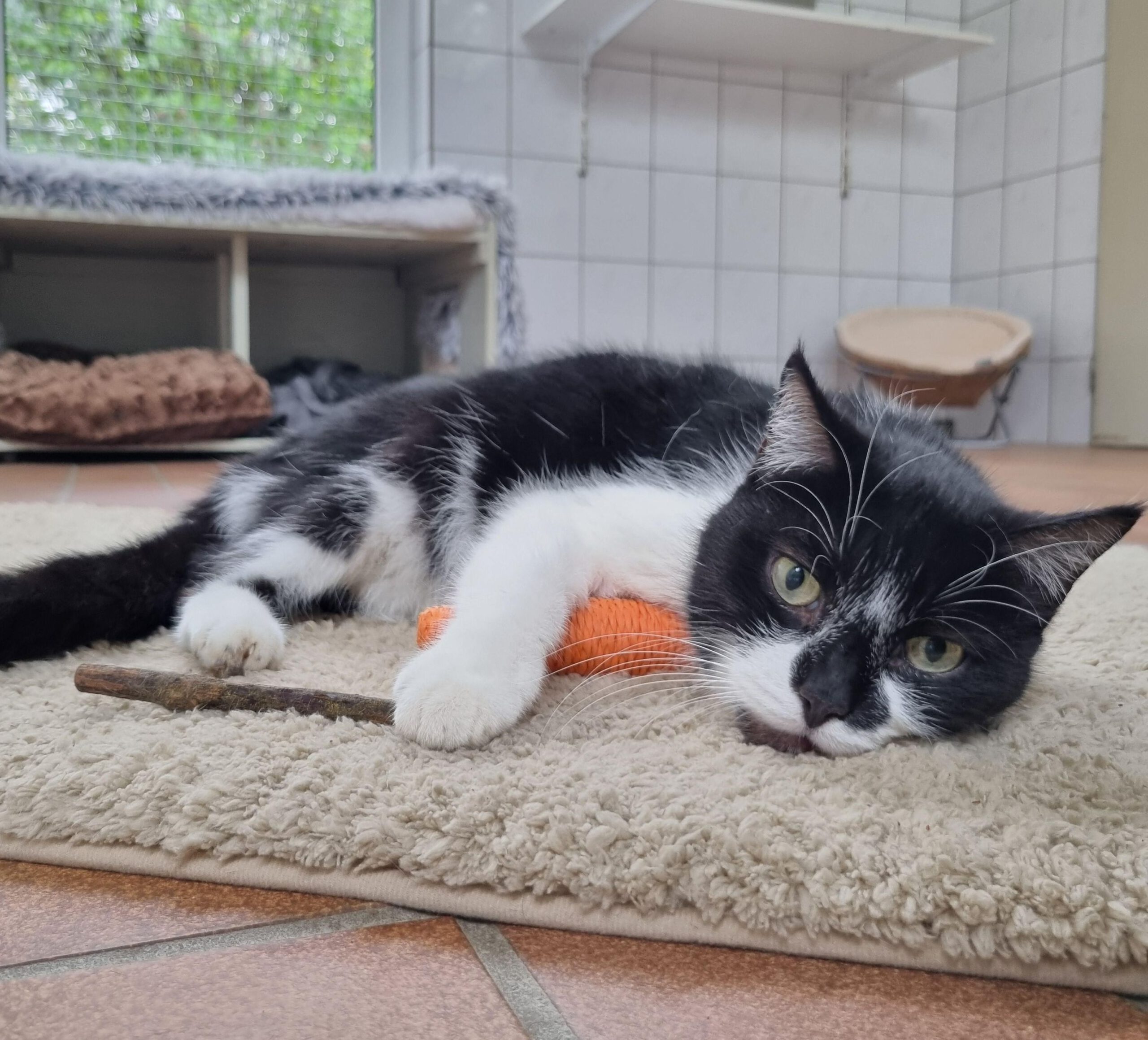 Der kleine Kämpfer ist so lebensfroh. Langsam kommt auch Sehvermögen zurück. Stevie braucht noch viele gedrückte Daumen, dass er mal medikamentenfrei sein Katerleben genießen kann.