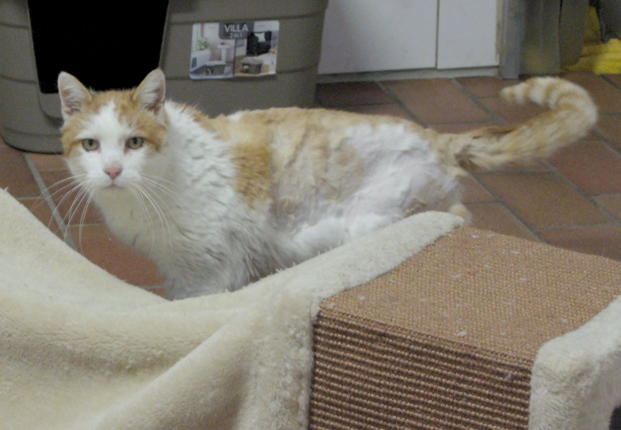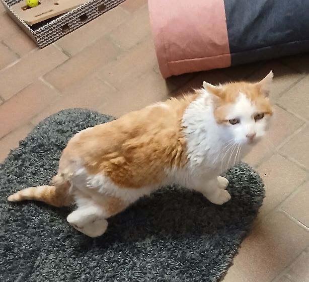 Old Curry ist bei seinen Findern zweimal durch die Katzenklappe rein gekommen. Er war sehr hungrig und machte auch sonst keinen guten Eindruck. Auf seinem Rücken hatte der arme Kerl eine dicke Filzplatte, die ihm sicher Schmerzen bereitet hat. Im Tierheim wurde er tierärztlich untersucht und musste großflächig geschoren werden. Inzwischen wurde Curry kastriert und geimpft und sucht nun ein liebevolles Zuhause.