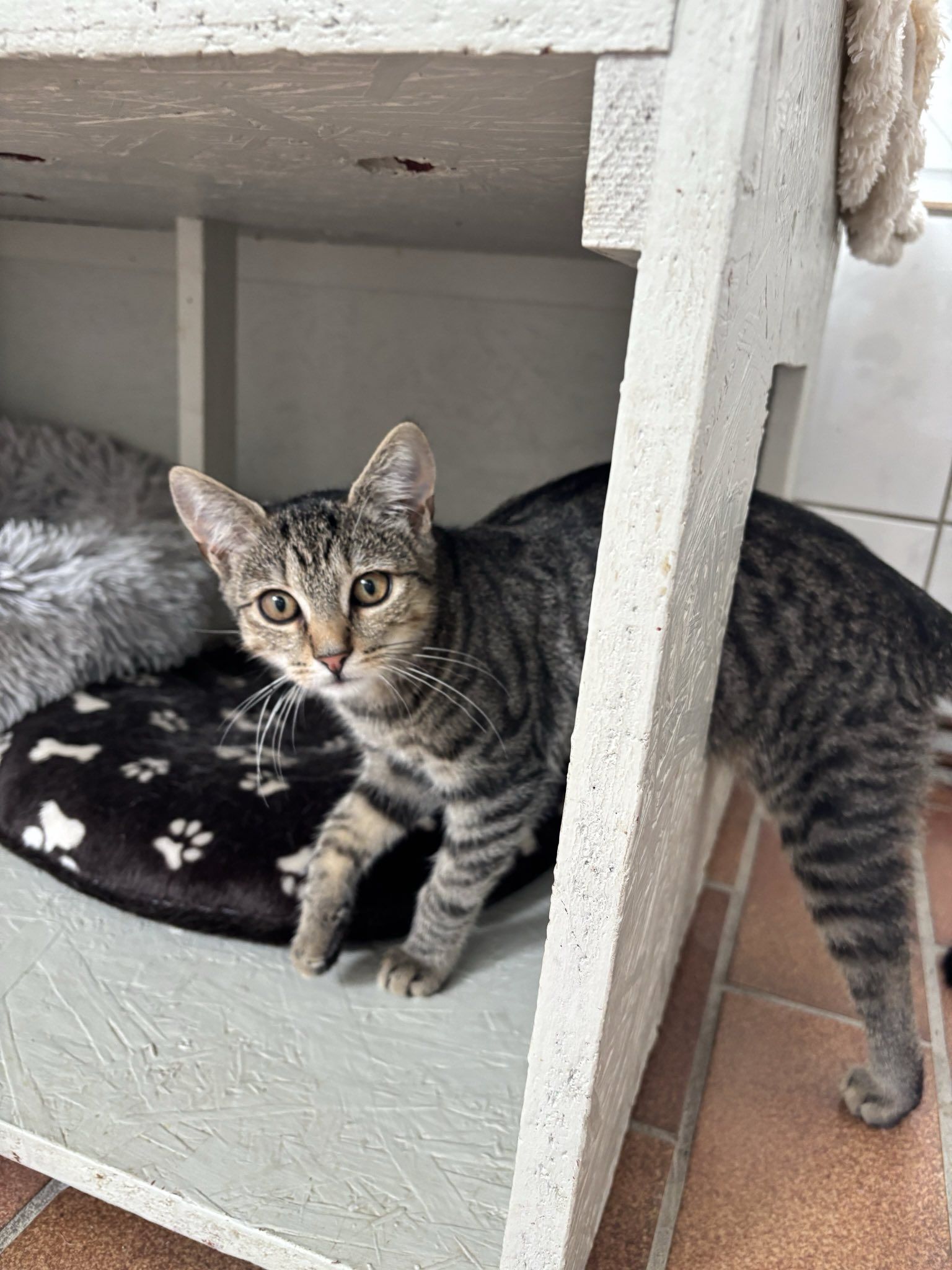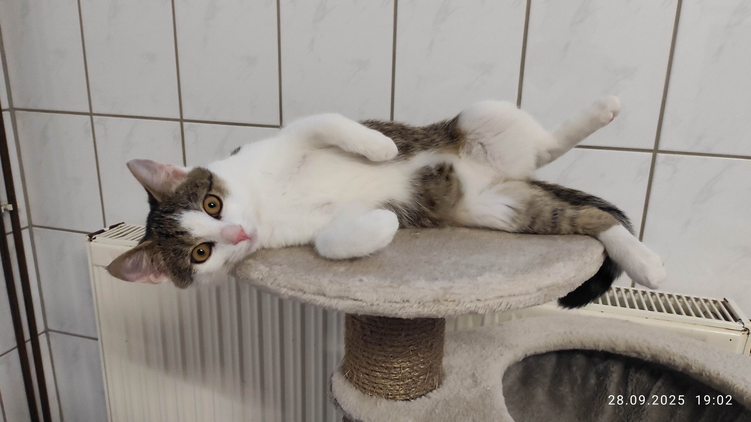 Lexy ist die Aufgeschlossenste von den Vieren. Sie beobachtet neugierig Menschen, geht auf sie zu und genießt jede Streicheleinheit. Lexy versteht sich super mit den anderen Kitten, spielt ausgelassen und erkundet neugierig alles Neue. Für ihr neues Zuhause wünschen wir uns, dass Lexy entweder mit einer ihrer Schwestern ausziehen darf oder einen bereits vorhandenen Spielkameraden bekommt.