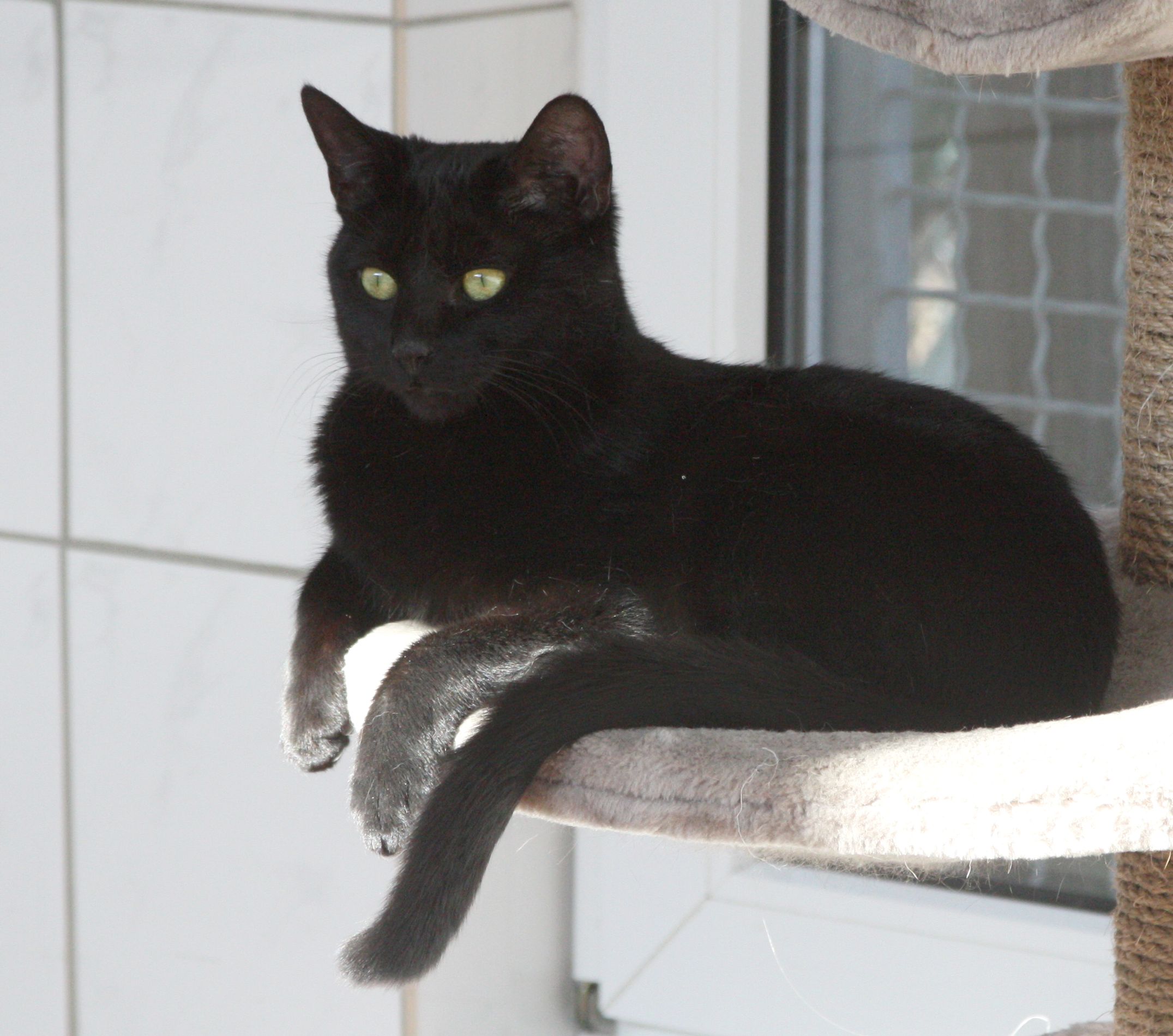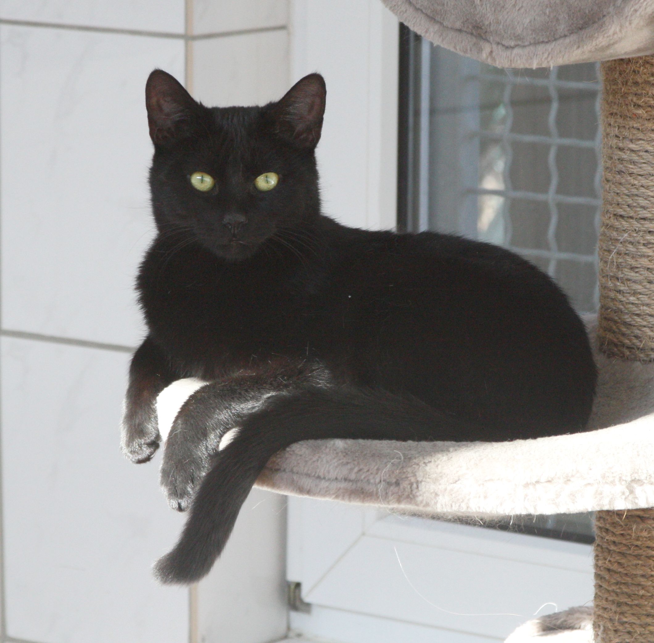 Tekla ist aufgeschlossen und verschmust. Altersentsprechend ist die schwarze Schönheit noch sehr verspielt. Mit den anderen Katzen gibt es schon mal Zickenkrieg, deshalb möchte Tekla ihr künftiges Zuhause gern für sich alleine haben. Tekla braucht später wieder Freigang.