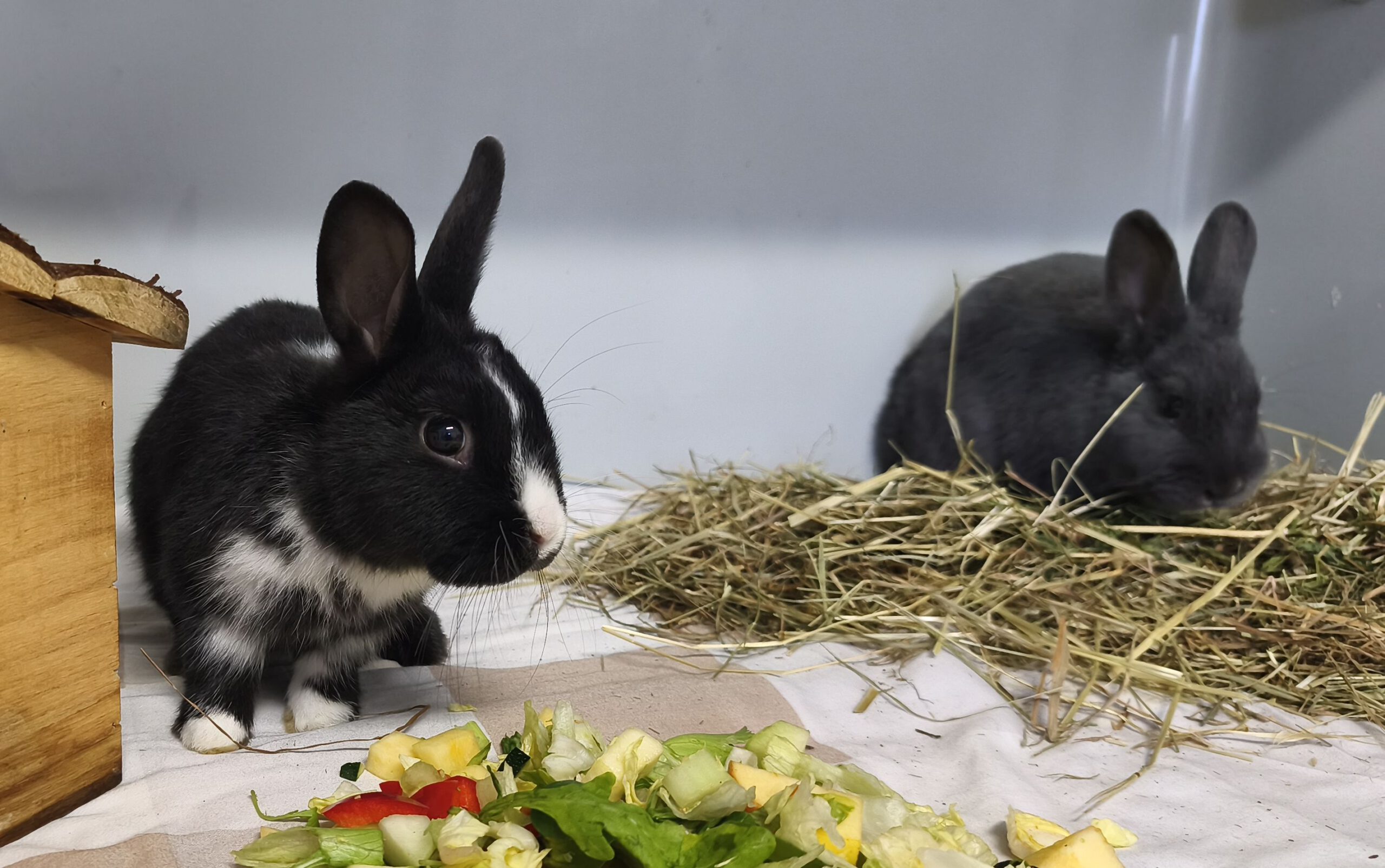 Die beiden Mümmelbrüder sind ca. ein ¾ Jahr alt und mittlerweile schon kastriert. Die beiden Fellnasen wurden an einem Parkplatz ausgesetzt und sich selbst überlassen. Sie sind beide recht zutraulich wenn es Futter gibt. Auch wenn sie manchmal noch zurückschrecken, ist die Neugier dann doch größer. Untereinander sind sie auch recht albern und verspielt. Mit viel Geduld und Ruhe werden die beiden bestimmt noch sehr handzahm. Es ist zwar nicht zwingend, dass die beiden zusammenbleiben müssen, aber es wäre schön. Und es wird dann auch so vermittelt, dass beide gleichzeitig in ein neues Zuhause ziehen.