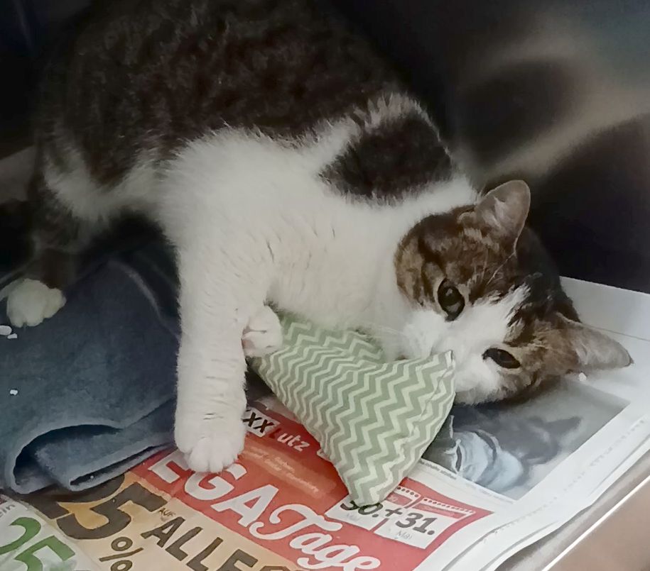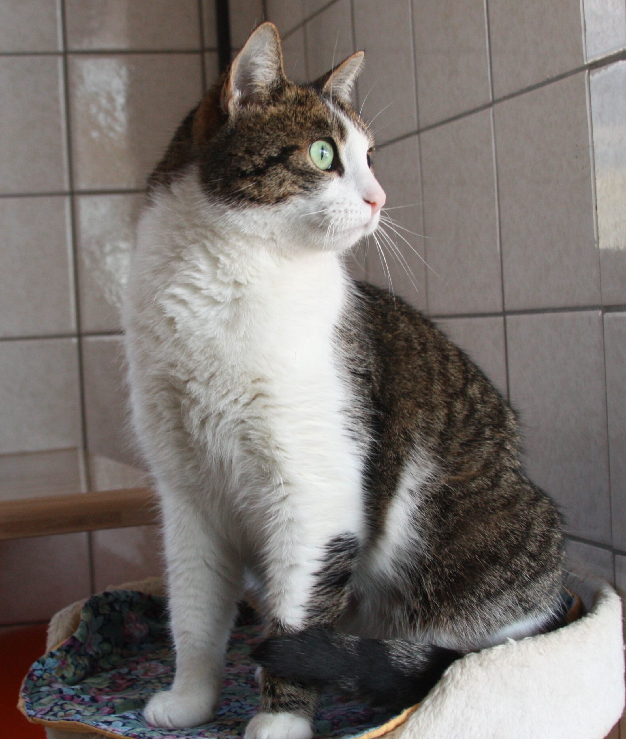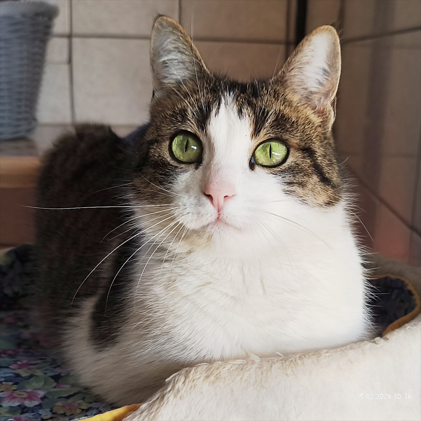 Sie zeigt sich bei uns sehr lieb und anhänglich. Im Katzenhaus zeigt sie sich als ausgesprochen ruhige und völlig konfliktfreie Mitbewohnerin. Sie begegnet anderen Katzen freundlich und gelassen, sodass wir davon ausgehen können, dass sie gut mit Artgenossen zurechtkommt. Wir hoffen, dass sich bald liebe Menschen melden und Trudi schnell wieder ein schönes Zuhause bekommt. Trudi möchte dort wieder ihren gewohnten Freigang haben.