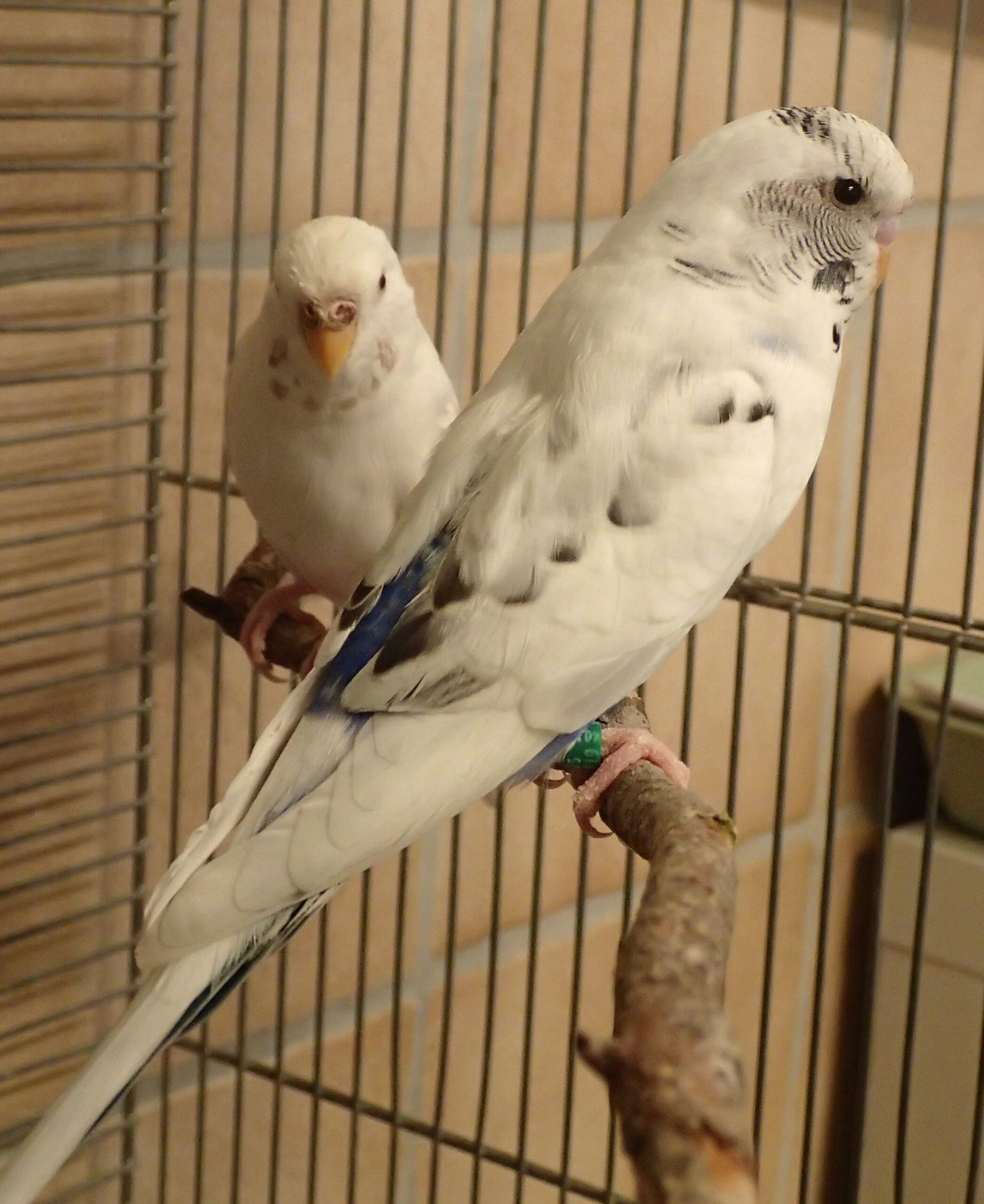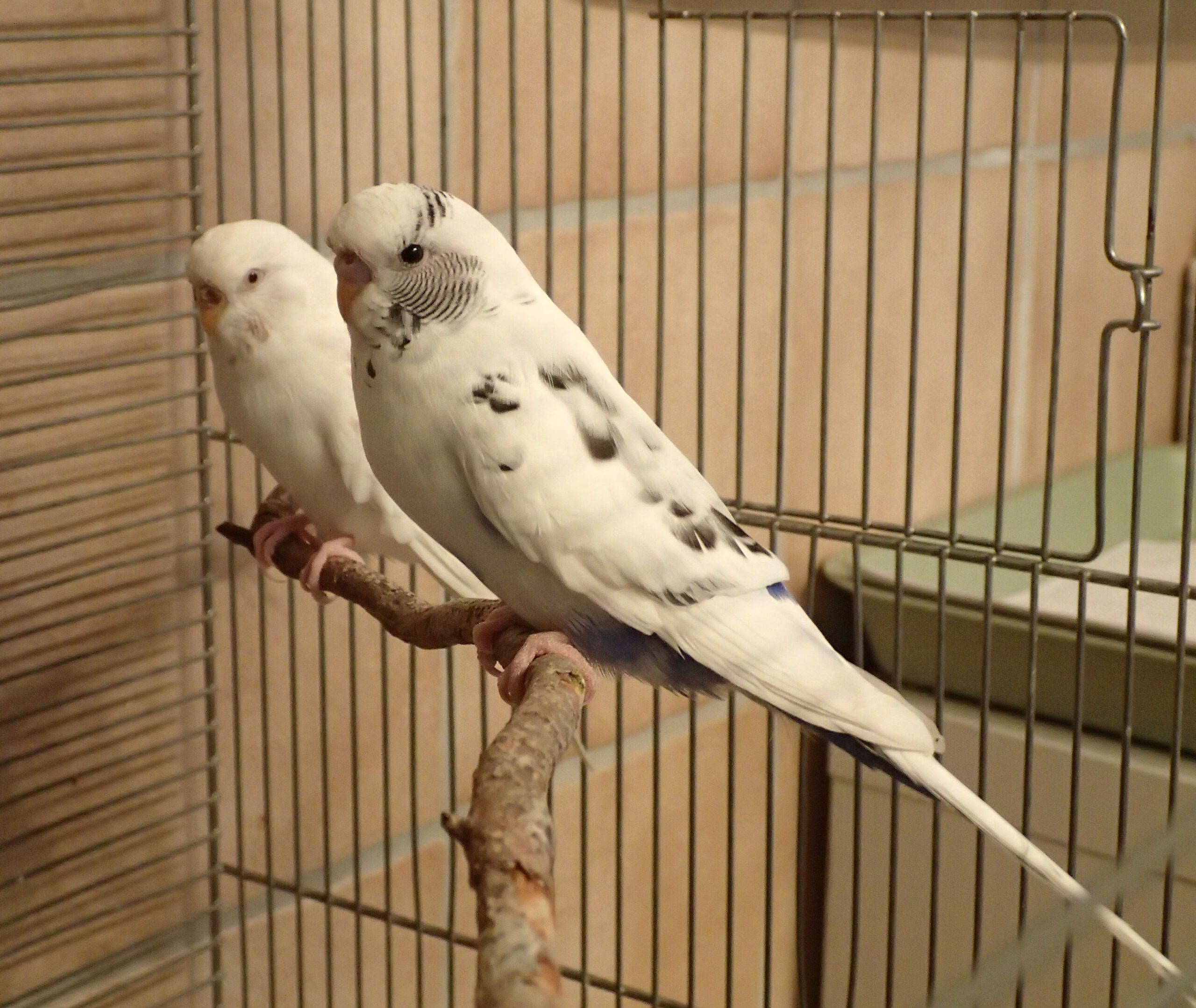 Dieses hübsche Wellensittich-Pärchen sucht ein neues Zuhause. Cooper und Fiona sind Abgabetiere und relativ zutraulich.