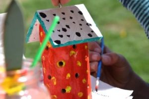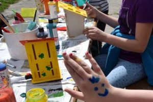 Das schöne Wetter konnten auch unsere kleinen Tierheimmäuse nutzen, mit denen wir auf dem Gelände des Tierschutzvereins fleißig Schmetterlingshäuser, Insektenhotels und Marienkäferhäuschen bemalten. Nachdem auch die meisten Finger bunt waren und wir die kleinen Kunstwerke trocknen lassen mussten, starteten wir eine Rallye über das Gelände. Neben kniffligen Fragen über die Anzahl der Zähne von Hund, Katze und Kaninchen, mussten die Tierheimmäuse verschiedene Gegenstände suchen und dabei richtig kreativ werden. Da hieß es zum Beispiel: Finde etwas, was Kaninchen gerne mögen. Diese Aufgabe lösten die meisten mit gepflückten Löwenzahn. Nach dem auch die Herkunftsgeschichte von Meerschweinchen und die Sortierung verschiedener Hunderassen nach Größe geklärt waren, mussten wir feststellen, dass die Zeit bereits fast verflogen war. Deshalb ging es noch einmal kurz in die Katzenhäuser zum Streicheln und um sich von den Tieren zu verabschieden.